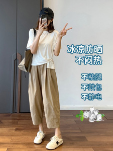 女性用小ぶりキャロットパンツ、夏用薄手ハイウエストスリムルーズカジュアルパンツ、9点8点ハーレムスウェットパンツ