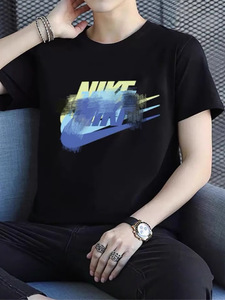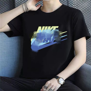 メンズピュアコットン半袖Tシャツメンズファッション夏ネットレッドトレンドインシンプルプリントトップルーズカジュアルTシャツ