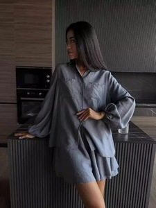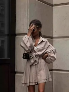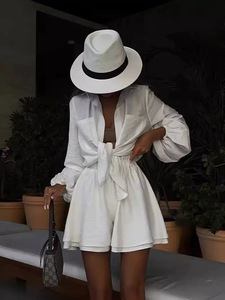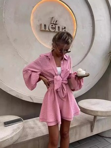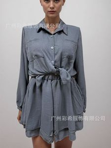 2025夏の欧米の婦人服のアマゾンのクロスボーダーの長袖の上着のハスの葉の辺の半ズボンのカジュアルなファッションのスーツの女性