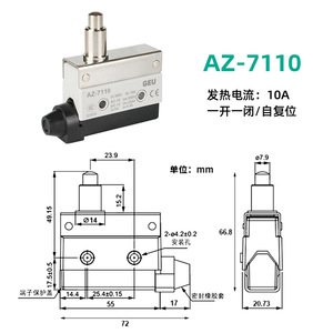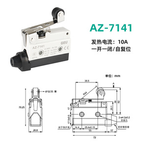 トラベルスイッチAZ7141自己復帰型大型マイクロスイッチ、保護ケース付き、開閉式、銀接点リミットスイッチ