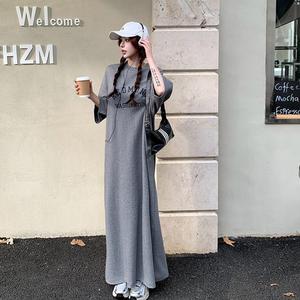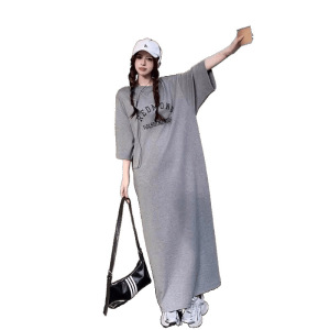 夏プラスサイズ 150kg ファッション怠惰なスタイルプリント半袖 T シャツドレス女性のためのファットミリメートルカジュアル膝上ロングドレス