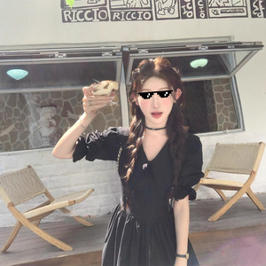 遅い傘の脱出娘 ラペルレースアップリボン ノースリーブ/五分袖ドレス フェミニンロングスカート 女性用