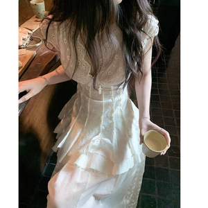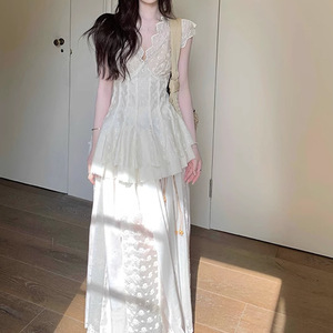 Jue 美しいカットニッチ最適化バージョン超ヘビーデューティテンセルウエストトップジャカード刺繍スカート女性のための 2025 夏新