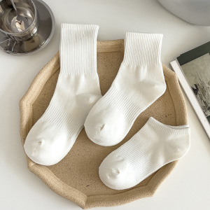 白袜子女春夏纯色中筒袜黑白色棉船袜日系透气夏季抗菌消臭长袜女