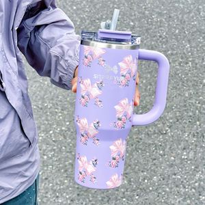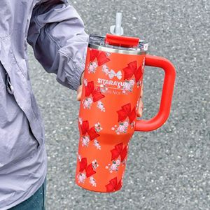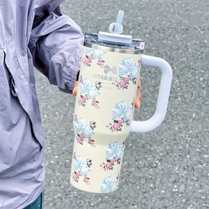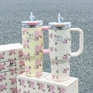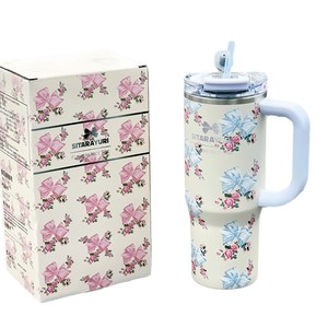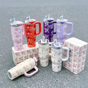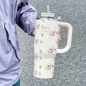 国境を越えた大容量の蝶の花の車のカップ 304 ステンレス鋼真空断熱カップハンドル付き車のアイスカップ