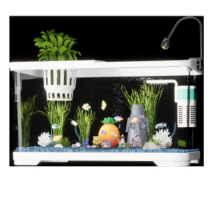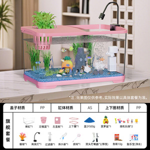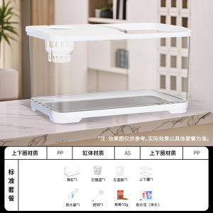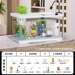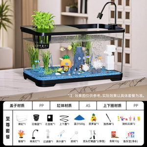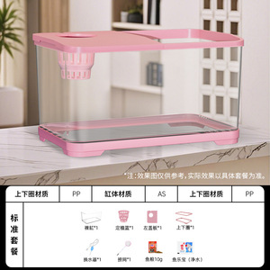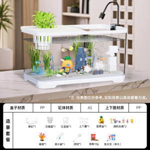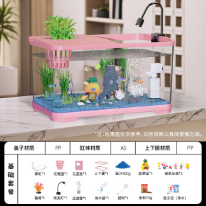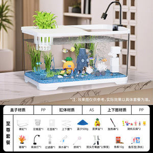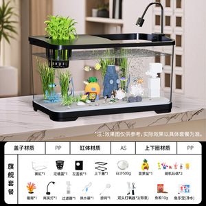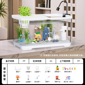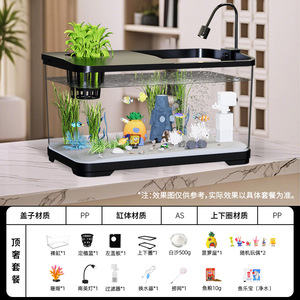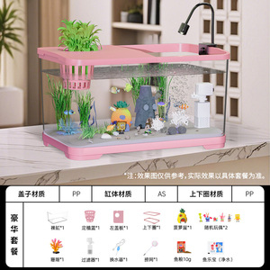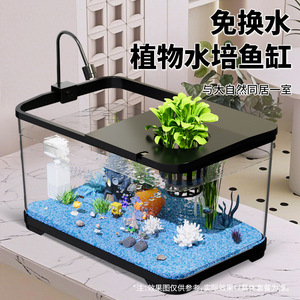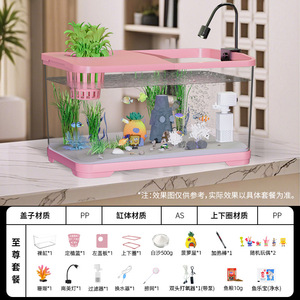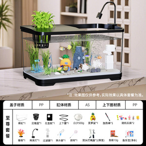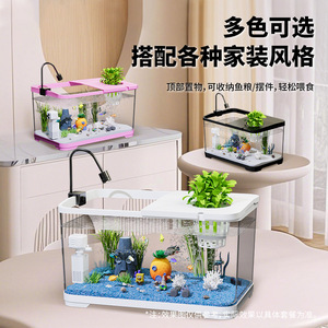 フィルター付き水槽リビングルーム家庭用統合酸素発生器と造園フルセット小型デスクトップアクリル観賞用金魚水槽