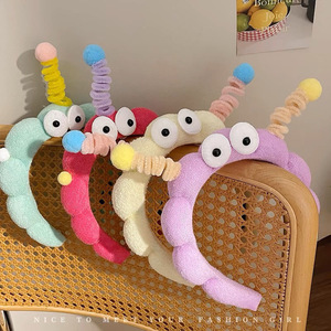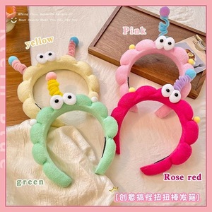 女性用洗顔ヘッドバンド、ツイストスティック、大きな目の男の子、かわいくて面白いヘッドバンド、豪華なヘアプレス、高頭蓋ヘアアクセサリー、秋冬ヘアアクセサリー