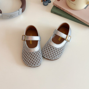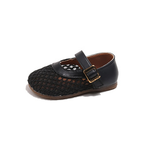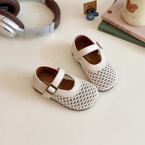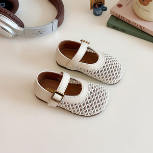 女の子織り小さな革靴ベビー中空通気性シングルシューズ 2025 夏少女ソフトソールベルクロプリンセスシューズ