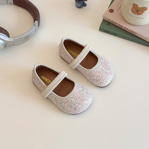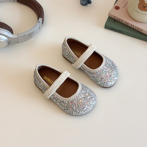 子供用小さな革靴、女の子用光沢のあるダンスシューズ、小さな女の子用スパンコール弾性バンドシューズ、女の赤ちゃん用プリンセスシューズ