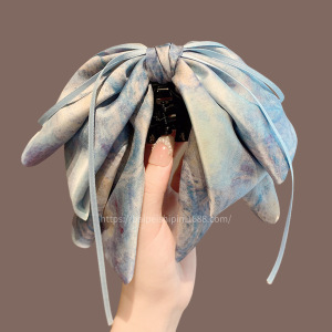 新しい中国風油絵ブルーミングリボンクリップブロガー新しい後頭部ポニーテールサメクリップレトロヘアピンヘアアクセサリー