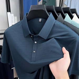 中年男性向け半袖Tシャツ、カジュアル無地ポロシャツ、夏用ラペルアイスシルク通気性半袖トップス、ドロップシッピング