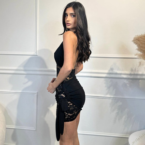 时尚风套装2025夏季蕾丝拼接挂脖上衣露脐抽绳短裤两件套