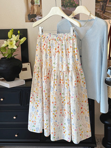 サマーモネガーデン~コットン風小花柄スカート 2025年夏新作 フレッシュ花柄スカート 夏傘スカート