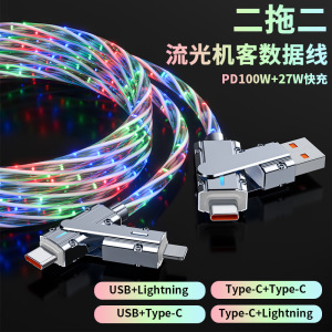 PD27W 100W 亜鉛合金 2 対 2 星空カラフルなストリーマー高速充電データケーブル 4 イン 1 発光充電ケーブル