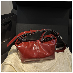 新しいフレンチソリッドカラーデザイン甘くてクールな2025カジュアルレトロヨーロッパとアメリカの質感のワンショルダーポータブル脇の下バッグレディースバッグ