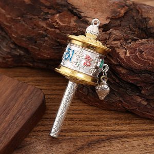 民族風キーホルダー、合金製アクセサリー、バッグ飾り、回転式経筒、金属製車載飾り、中国風ギフトアクセサリー工場