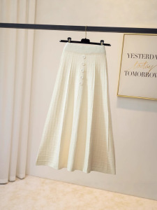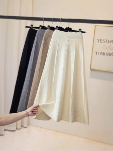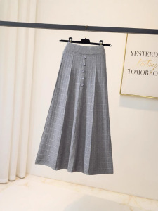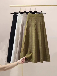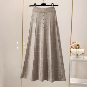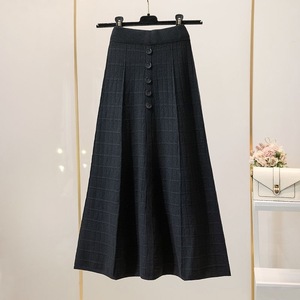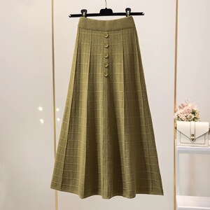 秋冬の女性用ブレストチェック柄ニットスカート、新しいハイウエスト痩身Aラインアンブレラスカート、ミドル丈のロングスカート