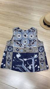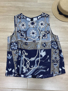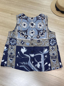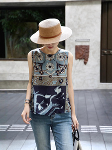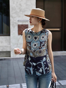 シルク織りジャカードプリントダブルクラフトシンプルな国民風ラウンドネック前後着用夏ノースリーブベストベスト