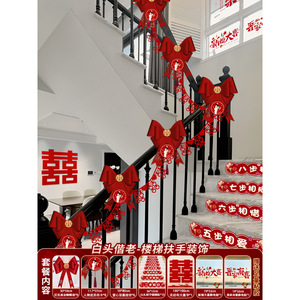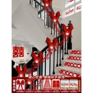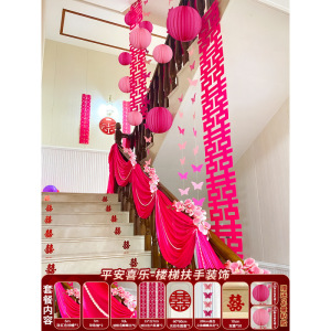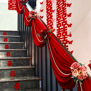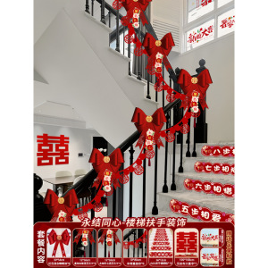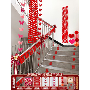 结婚楼梯扶手装饰纱幔拉花男女方新房客厅订婚礼场景婚房布置套装