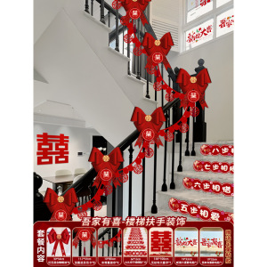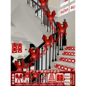 fXZ4WK9z8SR638pcBtWFG3SxZSQ=工厂家梯扶手布置台阶喜字贴拉花手扶梯新房装饰