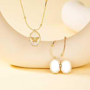 国境を越えた売れ筋のヨーロッパとアメリカの蝶ペットフォトフレームネックレス開閉可能なフォトアルバムネックレス女性のレトロな鎖骨チェーン女性のジュエリー