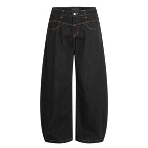 11KN アメリカン ブラック トップステッチ シミター ジーンズ 男女兼用 レトロ スリム トレンド バナナ 立体 ワイドレッグ カジュアル パンツ