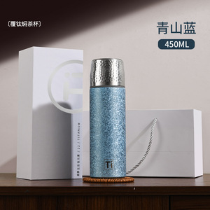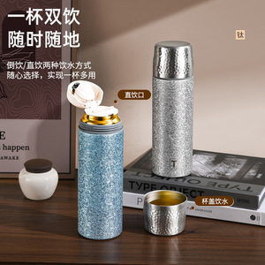 二層真空チタンメッキティーカップ男性ビジネスチタンカップ覇チタン茶水分離厚い保温カッププレゼントライトカップ