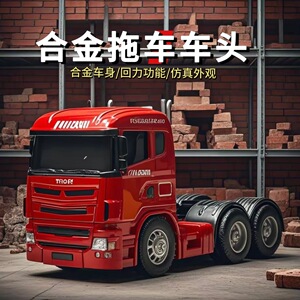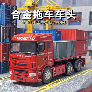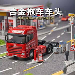 1-64合金拖车小卡车头回力玩具汽车模型工程车平板卡车货柜车男孩