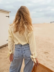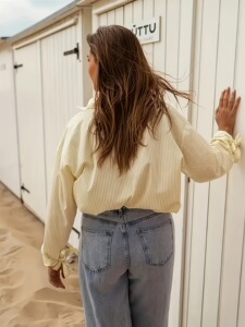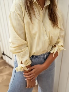 新しいモダンでファッショナブルなストライプのニッチデザインの長袖レディースルーズで多用途なシャツ、シックな質感のシャツ、トレンディです