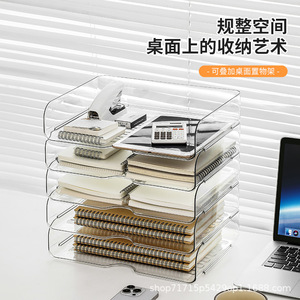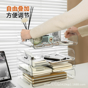 新学期の学生デスクトップストレージラック多層積み重ね可能な透明デスクトップファイルストレージボックス工場在庫