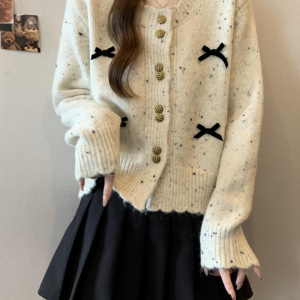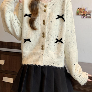 韓国カラードットニットカーディガン女性の秋と冬の新しいリボンセータージャケット女性