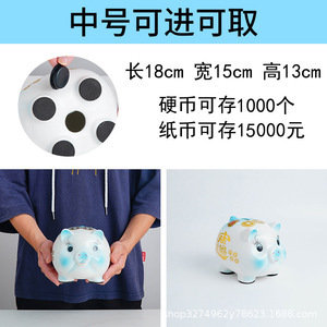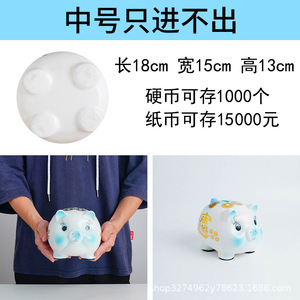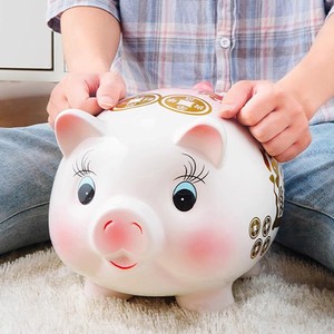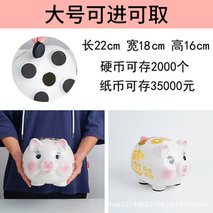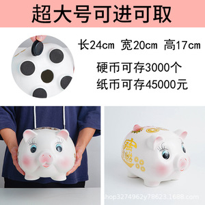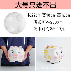 工場直販 セラミック製 ピンクと白の豚型貯金箱 入金のみ 貯金箱 大容量収納