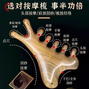 多機能フォーインワンサンダルウッドコーム、ヘッドセラピー、経絡浚渫、顔、目、頭皮マッサージコーム
