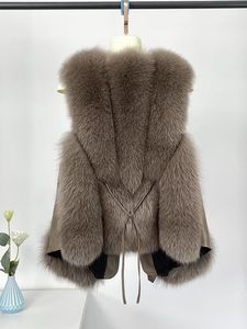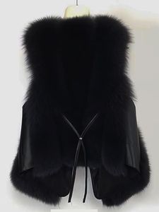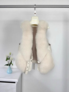 環境に優しい毛皮抗キツネの毛皮のベスト新しい V ネック 2025 秋と冬のファッションハイエンドステッチ無地カーディガン