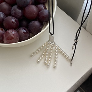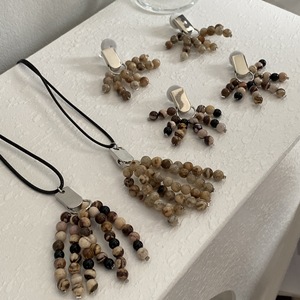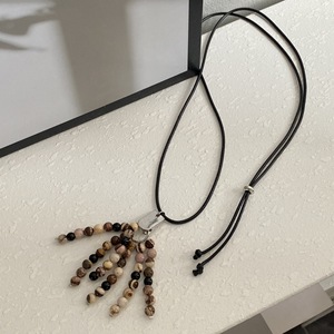 天然石ストリングタッセルロングビーズネックレス、多用途デザイン、ニッチプルネックレス、ハンドビーズイヤリング、新品