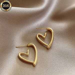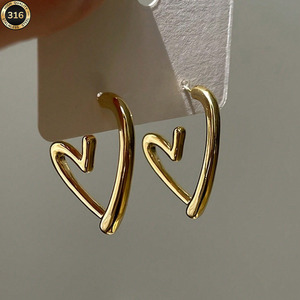 316クロスボーダーファッション個性ユニークなデザイン18K中空ラブハート型イヤリングシンプルで多用途なシンプルイヤリング