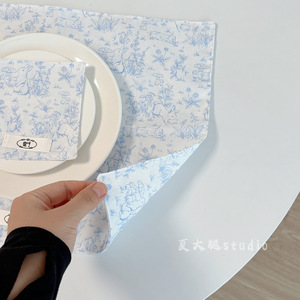 自家製ミルクブルーラインアリスウサギフレッシュナプキン生地プレースマット韓国インスタイルキッチンテーブルクロス純綿