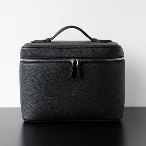 ニッチライトラグジュアリーファッショナブルな大容量第一層牛革ポータブルストレージ化粧品バッグミラー付きマルチグリッドトラベルメイクアップケース