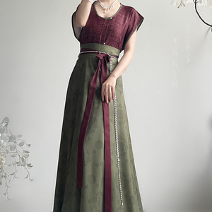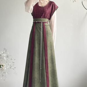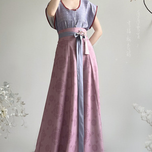 唐制褙子复原款汉服女春夏唐圆领齐腰八破长裙