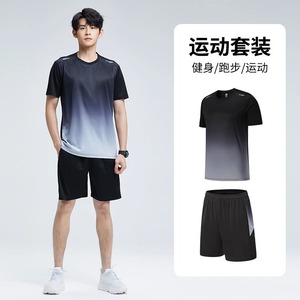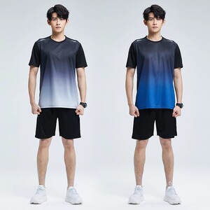 速乾性 Tシャツメンズスポーツスーツルーズアイスシルク夏薄いフィットネス服トレーニングランニング服半袖トップ