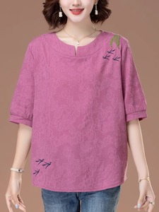 中高年ママの純綿Tシャツレディース半袖大きいサイズゆったりおしゃれ年齢軽減綿夏継ぎ刺繍トップス