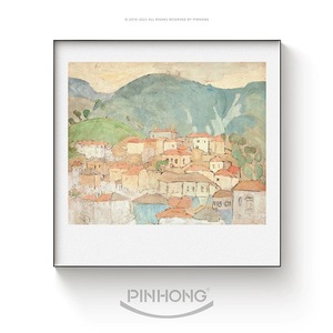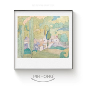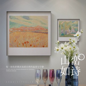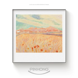 美式门口喷绘油画布装饰画玄关挂画家居麦田卧室客厅风景铝合金框