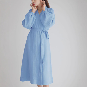 秋の新製品 2025 純綿二層糸快適で肌に優しいロングバスローブパジャマクロスボーダー卸売女性のホーム服