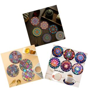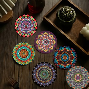 国境を越えた新しいレトロな曼荼羅コースター木製コーヒーカップコースターミルクティー木製コースター火傷防止断熱コースター