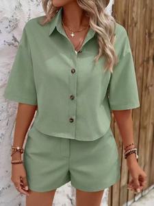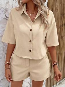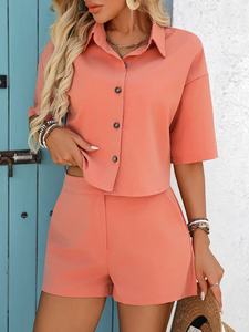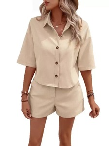独立系サイト2025アマゾンヨーロッパとアメリカのクロスボーダーレディースファッション半袖シャツ+カジュアルショーツ2点セット