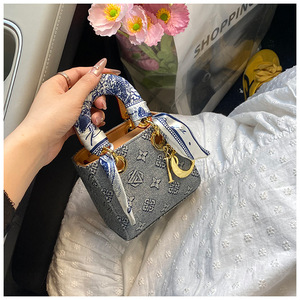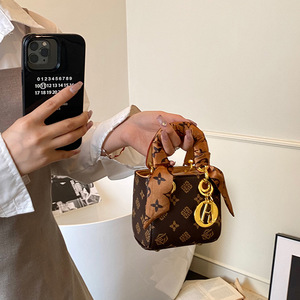 新しいスタイルのミニリップスティックバッグ、老眼プリント、斜め掛け、ダイアナ妃のシルクスカーフ、ポータブル、ファッショナブルで多用途、クロスボーダー女性