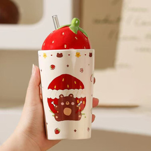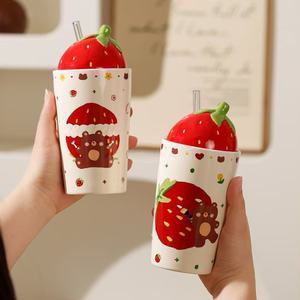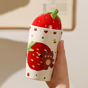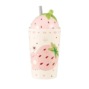 2025年新型大容量水筒カップ、飲料カップ、セラミックカップ、女性用マグカップ、高品質ストロベリーストローカップ