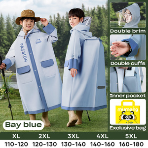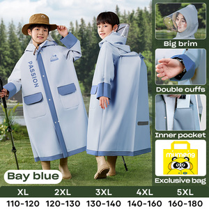 海外で人気の子供用レインコート、通学用、男女兼用、ロングタイプ、全身を覆う、大雨対応、リュック収納可能、越境レインコート