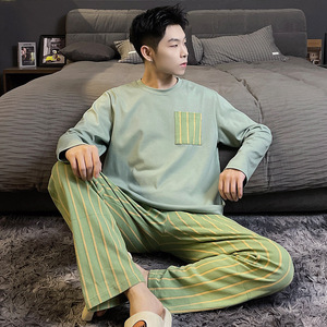 秋のパジャマメンズ模造綿長袖ズボンホーム服セット春と秋のティーンエイジャーカジュアルホームウェア屋外で着用可能