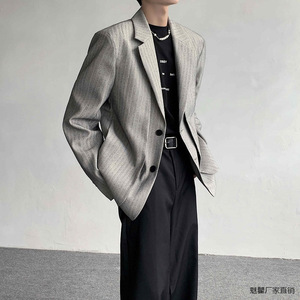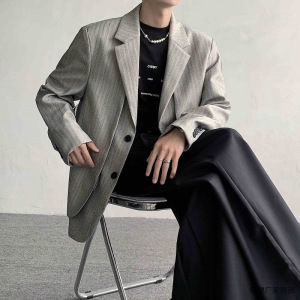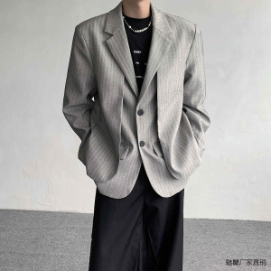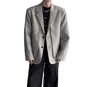 偽のツーピースグレースーツジャケットメンズハイエンドハンサムオールドマネースタイルニッチデザインスーツチャーミング